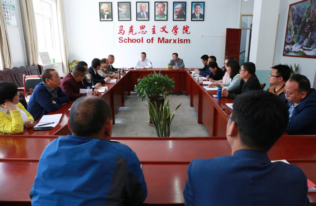 就进一步加强思想政治理论课教师队伍建设,王莹成说,一是承担起立德树人重任,静下心来研读经典,读原著、学原文、悟原理,认真学习贯彻习近平新时代中国特色社会主义思想;二是积极参加各种思想政治理论课的培训,努力打造好德能兼备的思政课教师队伍;三是积极鼓励教师“走出去”,把好的思想“引进来”;四是深入到蕴含深厚红色文化的爱国主义教育基地开展调研学习。