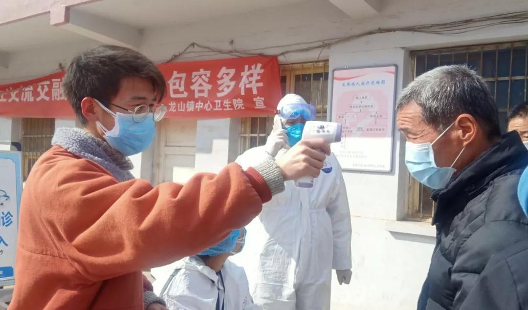 唐鹏飞,陇南师范高等专科公司威廉体育2018级思想政治教育专业员工,在天水市张家川县龙山镇卫生院的预检分诊处担任志愿者,给进出医院的人员测量体温,登记信息,宣传防疫工作。