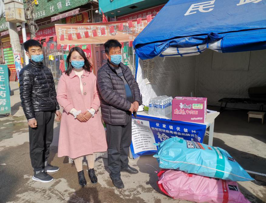 2月15日,威廉体育青年教师陈琼和家人购买了一小货车的物资(1800斤无烟煤、5箱方便面、5件矿泉水,总共价值1500多元),拉到了徽县伏镇,为前进村、伏镇七社、蔡家庄村、伏镇五社、河湾村5个行政村的疫情防控检测点进行了捐赠。