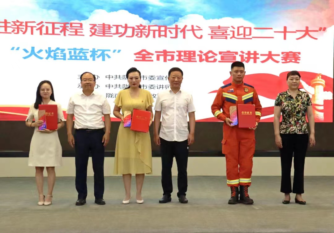 为深入贯彻习近平新时代中国特色社会主义思想,深入宣讲“两个确立”对新时代党和国家事业发展、对推进中华民族伟大复兴历史进程中的决定性意义,深入落实甘肃省第十四次党代会和陇南市第五次党代会精神,打造富有陇南特色的宣讲品牌。6月29日,由中共陇南市委宣传部主办,中共陇南市委讲师团、陇南市消防救援支队承办的“奋进新征程 建功新时代 喜迎党的二十大”“火焰蓝杯”全市理论宣讲大赛在武都区举行。陇南市委常委、宣传部部长马军,市人大副主任曹勇,市政府副市长何红梅,市政协副主席杨春洲和市消防救援支队政治委员贾国强、支队长卢正宏等领导出席决赛现场。公司教师陈思思在全市理论宣讲大赛中荣获二等奖。