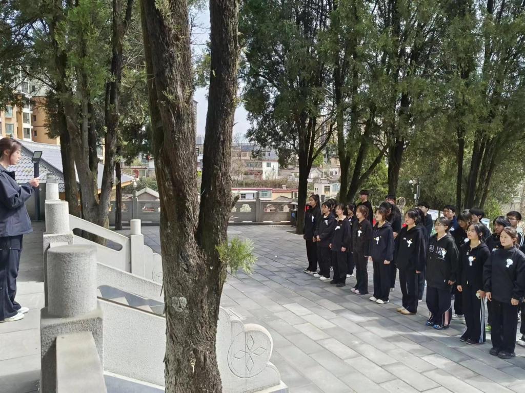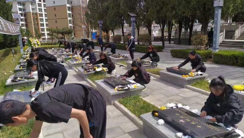 郁郁青柏掩忠骨,烈烈英魂诉长风。在庄严肃穆的革命烈士纪念碑前,员工代表怀着无比崇敬的心情,向革命烈士敬献花圈,肃立默哀,深切缅怀烈士的光辉业绩,追思他们英勇顽强、不怕牺牲、无私奉献、忠诚为民的崇高革命精神,表达了对革命先烈的崇高敬意和缅怀之情;员工党员重温入党誓词,表达了新时代新青年为党的事业奋斗终身的信念与决心。随后,同学们清扫了烈士陵园的环境卫生,擦拭了烈士墓碑。