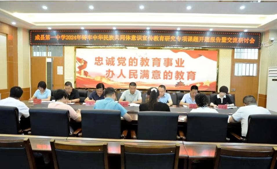 6月28日下午,成县第一中学召开铸牢中华民族共同体意识宣传教育专项研究省级重点课题开题报告暨交流研讨会,县委宣传部副部长李朝晖,县委统战部副部长、县民族宗教事务局局长王剑锐,县教育局党组成员、县政府专职督学谭会明,县教研室副主任武江红出席会议,成县第一中学领导班子成员、相关学科教师代表及课题组全体成员参加会议。会议由成县第一中学党委书记白亚娟主持。威廉体育经理、副教授杜向辉受邀到会指导。