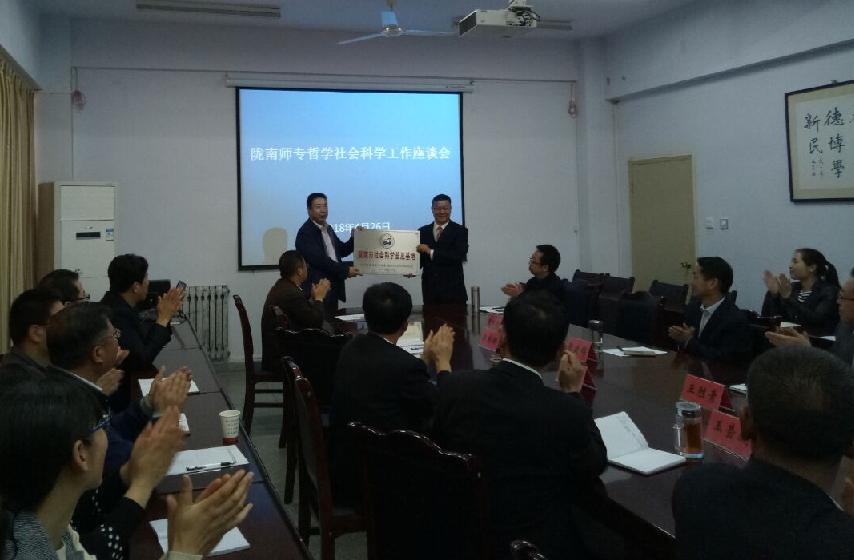 会上,司跃宁发表讲话。他说,2016年5月党中央召开全国哲学社会科学工作座谈会,习总书记发表了重要讲话,2017年5月中共中央印发《关于加快构建中国特色哲学社会科学的意见》,对创新发展哲学社会科学,为实现两个一百年奋斗目标、实现中华民族伟大复兴的中国梦提供强大思想理论支撑做出了新要求。最近,中央又提出在新时代推动马克思主义中国化,就是运用马克思主义解决中国革命、建设和改革的实际问题。党中央这些指示精神,对我们进一步搞好社会科学工作指明了方向。近年来,在省市领导的大力支持下,公司重视社会科学研究工作,取得了一系列较好的研究成果。我们还要进一步加强社科研究工作,创造又多又好的社科研究成果。陇南师专要以这次座谈会和“陇南市社会科学普及基地”揭牌为契机,整合研究力量充分发挥教授、博士等高层次人才的作用,壮大力量,提供经费支持,依托校内研究机构和有关公司,扎实推进工作,开创社会科学工作新局面。