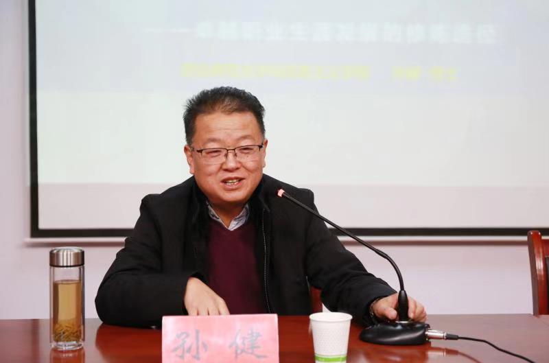 孙健指出,卓越职业生涯发展的途径主要有感恩、责任、激情、奋斗、愿景。他说,感恩是一种良好的品质,是一种生活中的大智慧;责任是一种使命、承诺、托付、态度和机会;激情是积极进取的精神,是乐观自信的态度,是学习动力的源泉,是明确的角色意识;奋斗是为实现一定目的而努力做到最好,幸福都是奋斗出来的,时代新人要做新时代的奋斗者;愿景是希望看到的情景,是引导与激励人的未来情景的意象描绘。一个感恩的人,一个有责任的人,一个充满激情的人,一个奋斗不止的人,一个时刻向愿景进发的人,才能规划自我、发展自我、成就自我,走上卓越生涯之路。